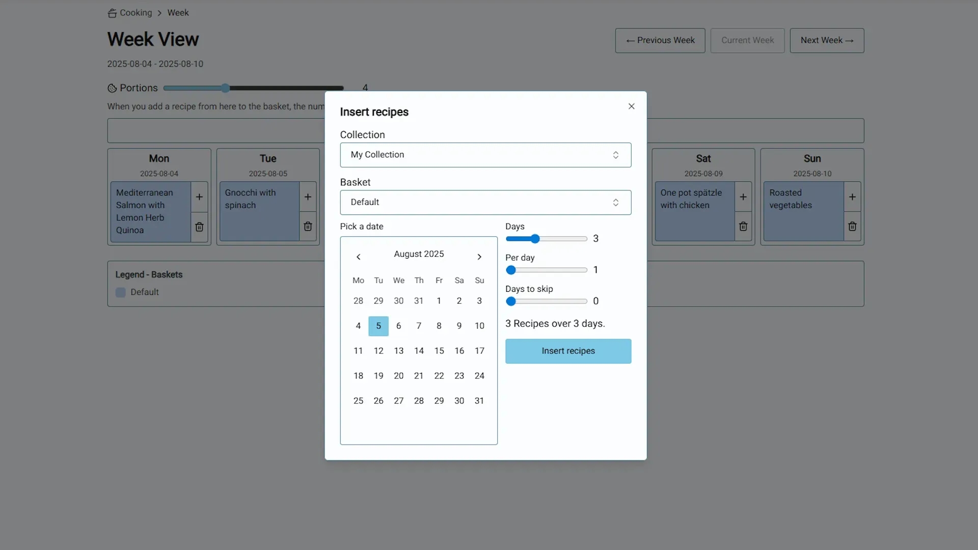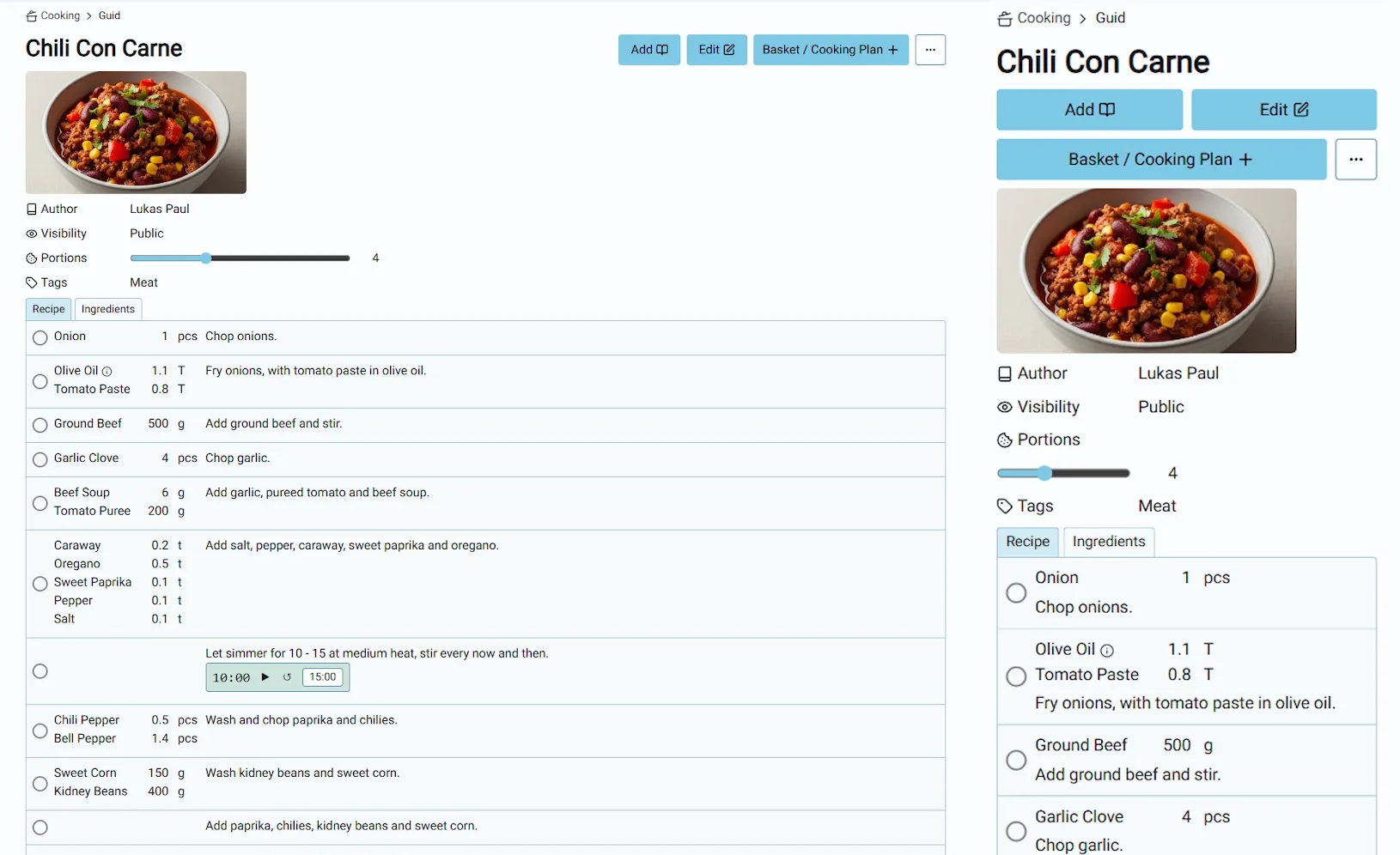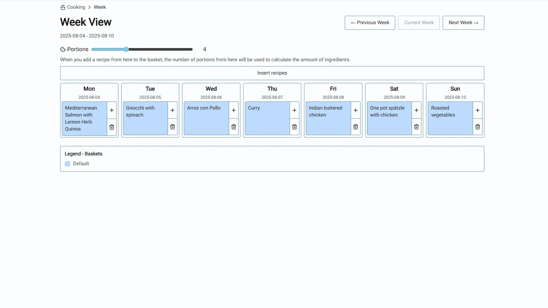 Add recipes to your shopping basket, filtered by what you already have at home, and share baskets with friends and family.