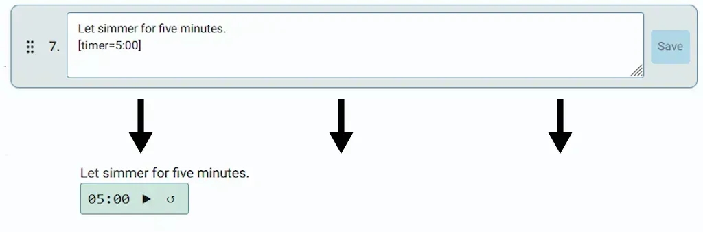 Insert timers directly into your cooking steps to keep track of time while you cook.